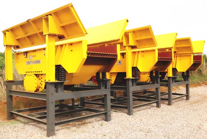 振動給料機(jī)又稱振動喂料機(jī),在生產(chǎn)流程中占據(jù)重要地位,能夠把塊狀、顆粒狀物料從儲料倉中均勻、定時、連續(xù)地給到受料裝置中去,在砂石生產(chǎn)線中可為破碎機(jī)械連續(xù)均勻地給料分級。